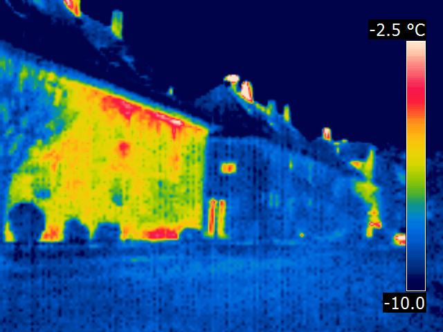 Die beste Jahreszeit für Gebäudeaufnahmen ist der Winter. Damit eine Wärmebrücke erst sichtbar wird, muss Wärme von innen nach außen dringen.